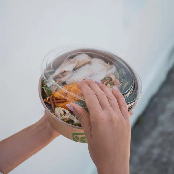 Our PLA clear lids are leakproof and suitable for cold food only. They are not suitable for the microwave or oven. Designed to fit our wider 500-1,000ml kraft bowls which are ideal for poke bowls, salad bowls and more. Certified industrially compostable.