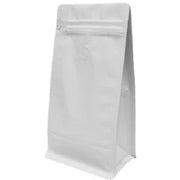 Introducing the Matte White 500g Box Bottom Coffee Bag, sized at 250(H) x 125(W) x 90(G) mm. This innovative bag combines the best of both worlds - the shape-retaining qualities of a box and the convenience of a bag, offering a range of unique benefits: