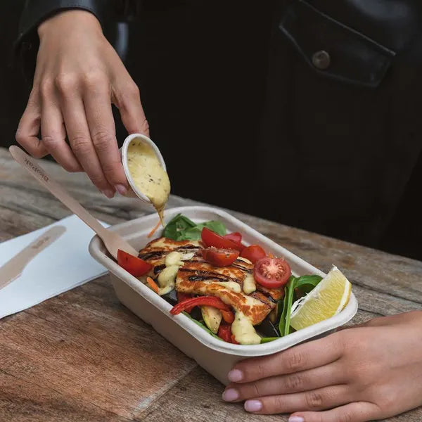 Our plastic-free sugarcane takeaway containers are made from rapidly renewable sugarcane pulp, a by-product of the sugar refining industry. These 750ml natural bagasse food container bases are microwave and oven safe.