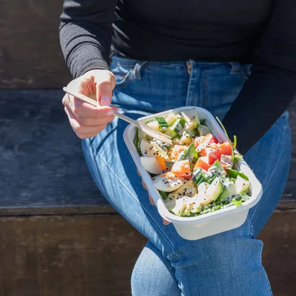 Our plastic-free sugarcane takeaway containers are made from rapidly renewable sugarcane pulp, a by-product of the sugar refining industry. These 750ml white disposable bagasse food container bases are microwave and oven safe.