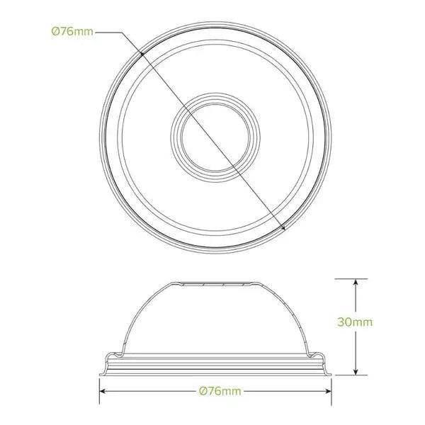 BioPak 90ml / 3oz plant fibre dome ice cream cup lids are perfectly portioned for serving ice cream, frozen yoghurt, or gelato. Made from plant fibre with no added PFAS, these lids are certified home compostable (AS5810) and industrially compostable (AS4736). These ice cream cup lids are not compatible with hot foods, microwaves, or oven heating.