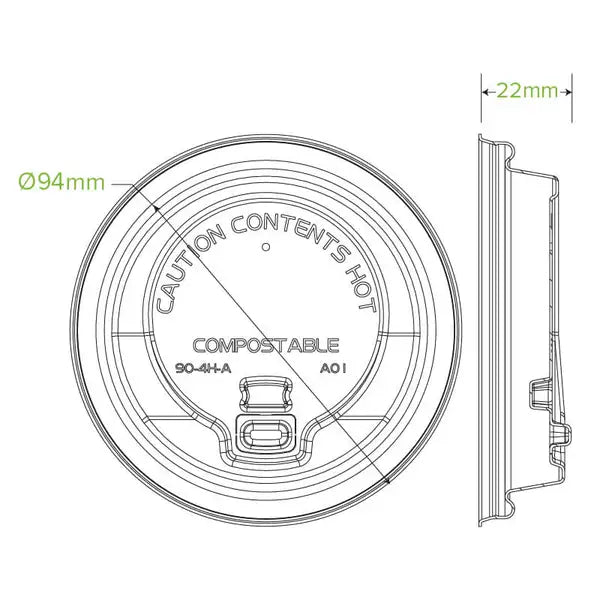 Our reclosable coffee cup lids are made from rapidly renewable sugarcane pulp with no added PFAS, and certified home compostable (AS5810). These lids are a sustainable alternative for PS coffee stoppers and have a hinged leak-proof seal for the sipper hole which reduces spills out of the cup and keeps the beverage hot and hygienic. Perfect for deliveries! This lid fits our 280-350ml/ 8(90)-20oz BioCups.