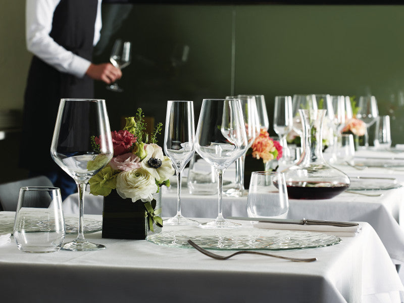 Lead free Crystal glass (Dir. Cee 69/4939) in the exclusive “Star Glass” composition. Is characterized by the purity of the raw material and the clarity and brightness of the products. “Star Glass” does not alter the colour, smell or taste of the wine (see chart). Shapes moulded with expertise, Star Glass guarantees high end beautiful recyclable products.