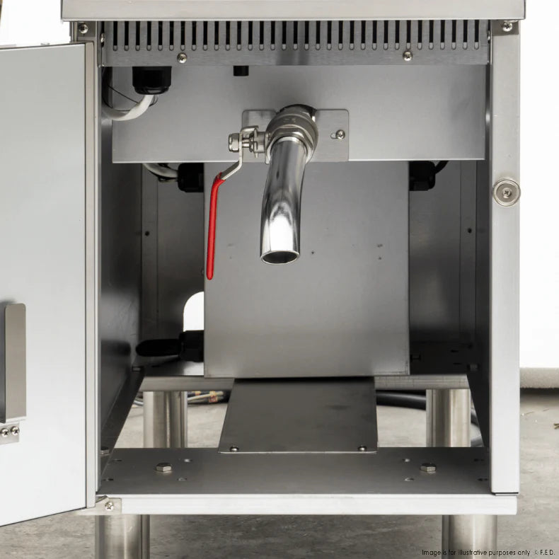 - Single Stainless Steel Vat: Robust and spacious vat for large volume frying.