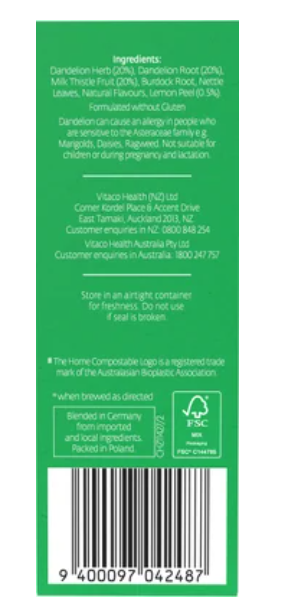 Healtheries Detox Dandelion & Milk Thistle With Lemon Tea Bags 20pk