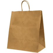Upgrade your home meal delivery experience with our medium-sized brown Kraft bag featuring sturdy twisted paper handles. With a generous volume of 17.8 L and dimensions of 330 x 300 + 180 mm, this bag can carry a maximum weight of 9 kg, ensuring you can conveniently transport multiple items.