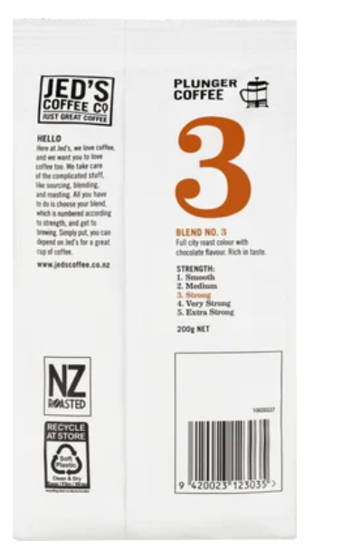 Jed's Coffee Co. #3 Strong Strength Plunger Grind Coffee 200g