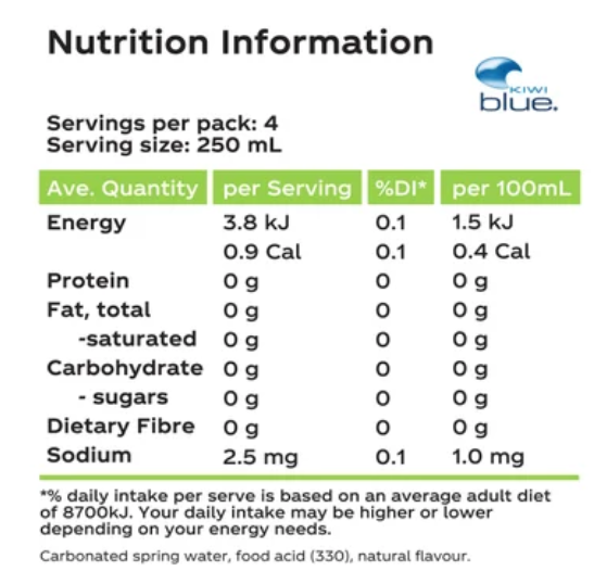 Kiwi Blue Lime Lightly Sparkling NZ Spring Water 4pk
