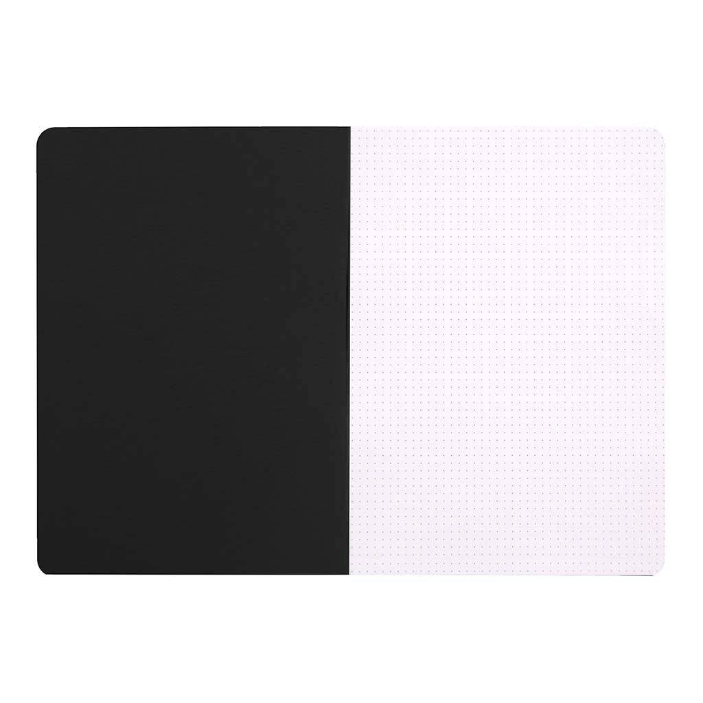 This classic stapled notebook has 48 pages of 80gsm paper. Made in France. A4 21 x 29.7cm. White dot paper. Black cover.