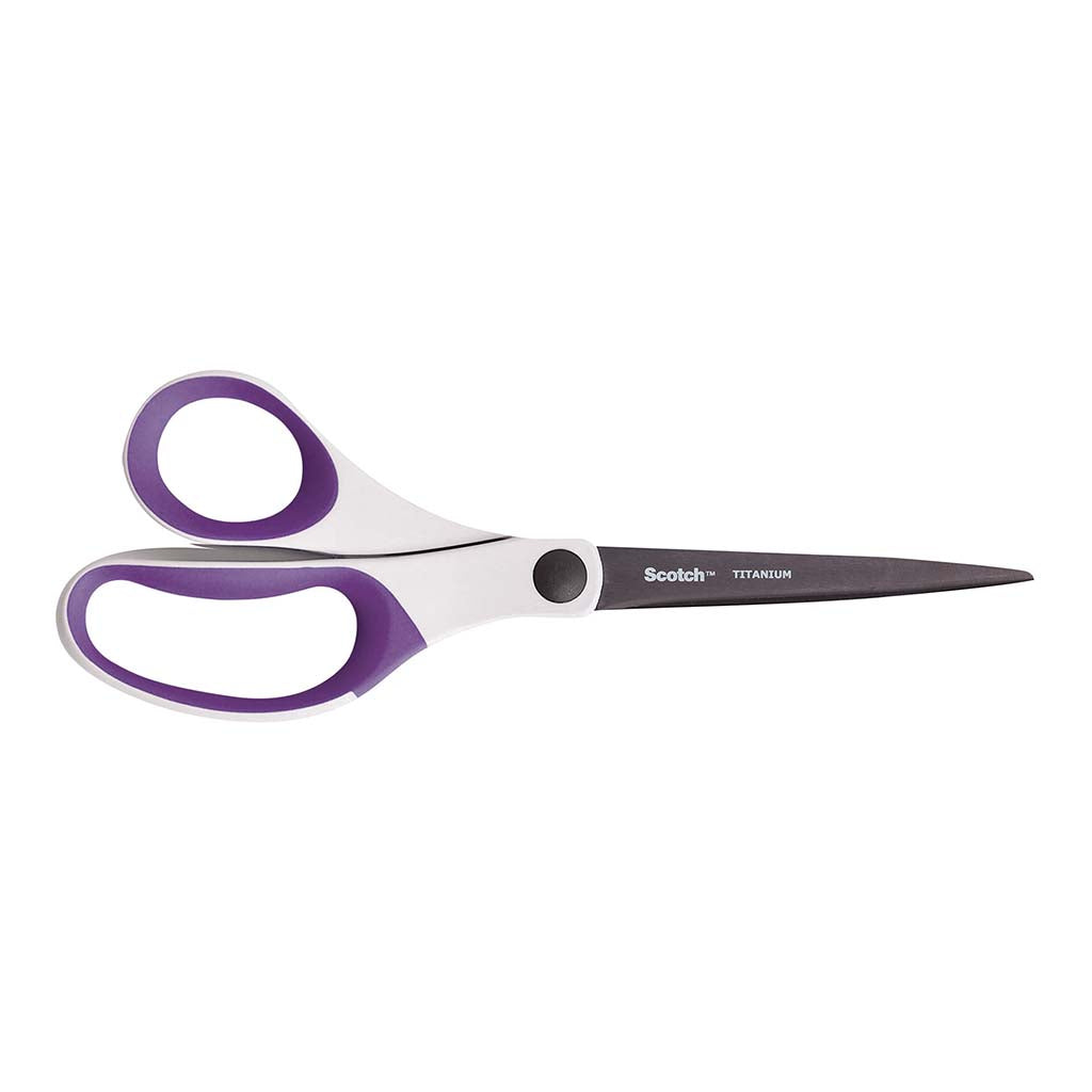 Scotch® Precision Ultra Edge Scissors are ideal for fabric, crafts and photos. Titanium-fused blades stay sharp beyond 100,000 cuts - longer than stainless steel blades. Soft comfort grip handle designed for left- or right-handed use. 8inch. Assorted colours of Blue, Green and Lavender.