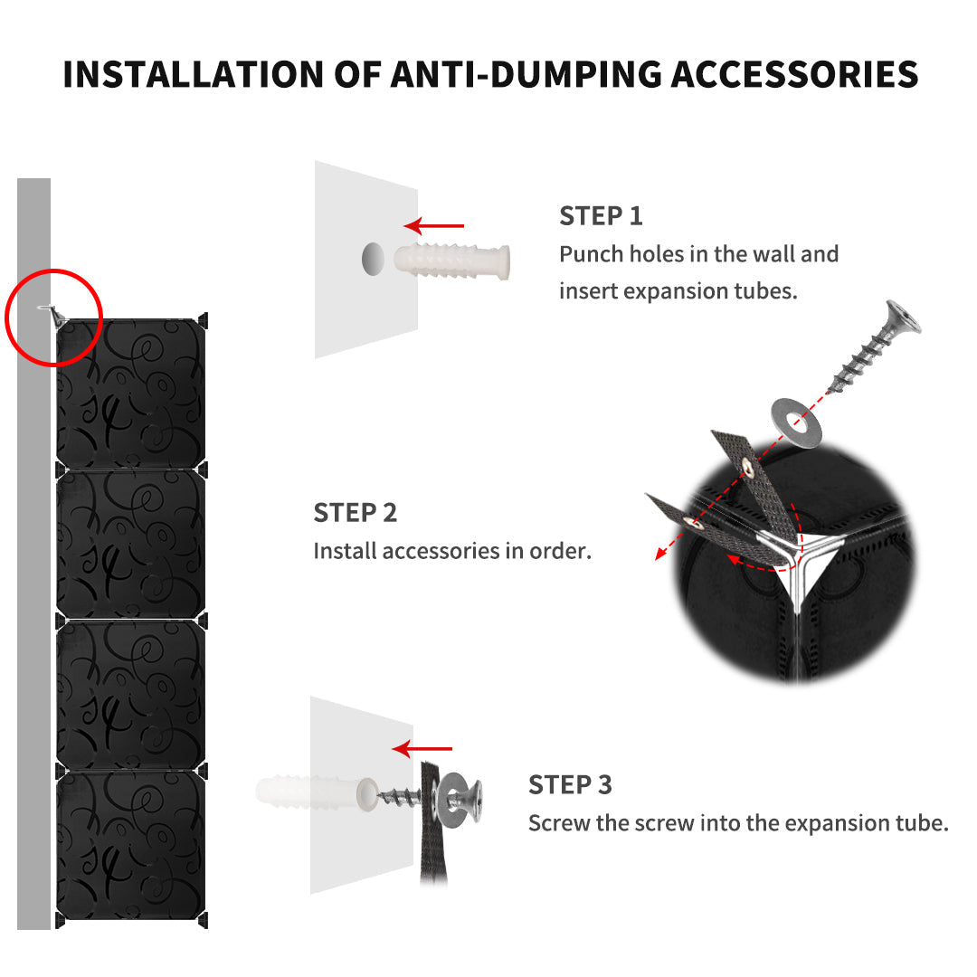 SOGA Shoe Organizer is EASY TO ASSEMBLE. Comes with detailed installation instructions and a hammer, helping you install it quickly and easily. Each panel and connector needs to be tightly connected, knocking off with the hammer after assembly. We recommend using a pair of gloves to protect the hands from getting scratched or harmed while attaching the panels with the connectors. An anti-dumping accessory is provided to avoid shelf dumping by kids, making it safer when there is a kid around.