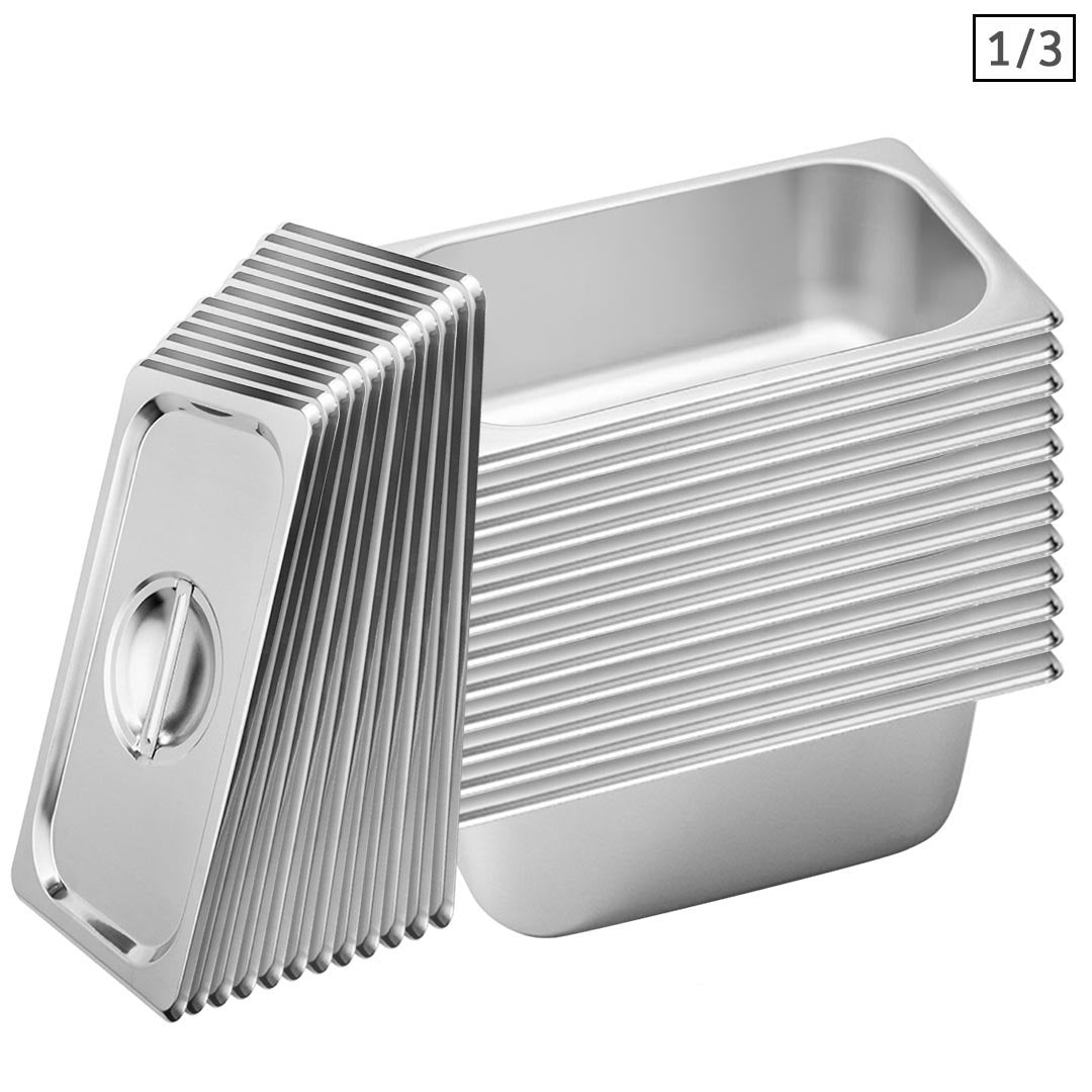 SOGA 12X Gastronorm GN Pan Full Size 1/3 GN Pan 10cm Deep Stainless Steel Tray With Lid