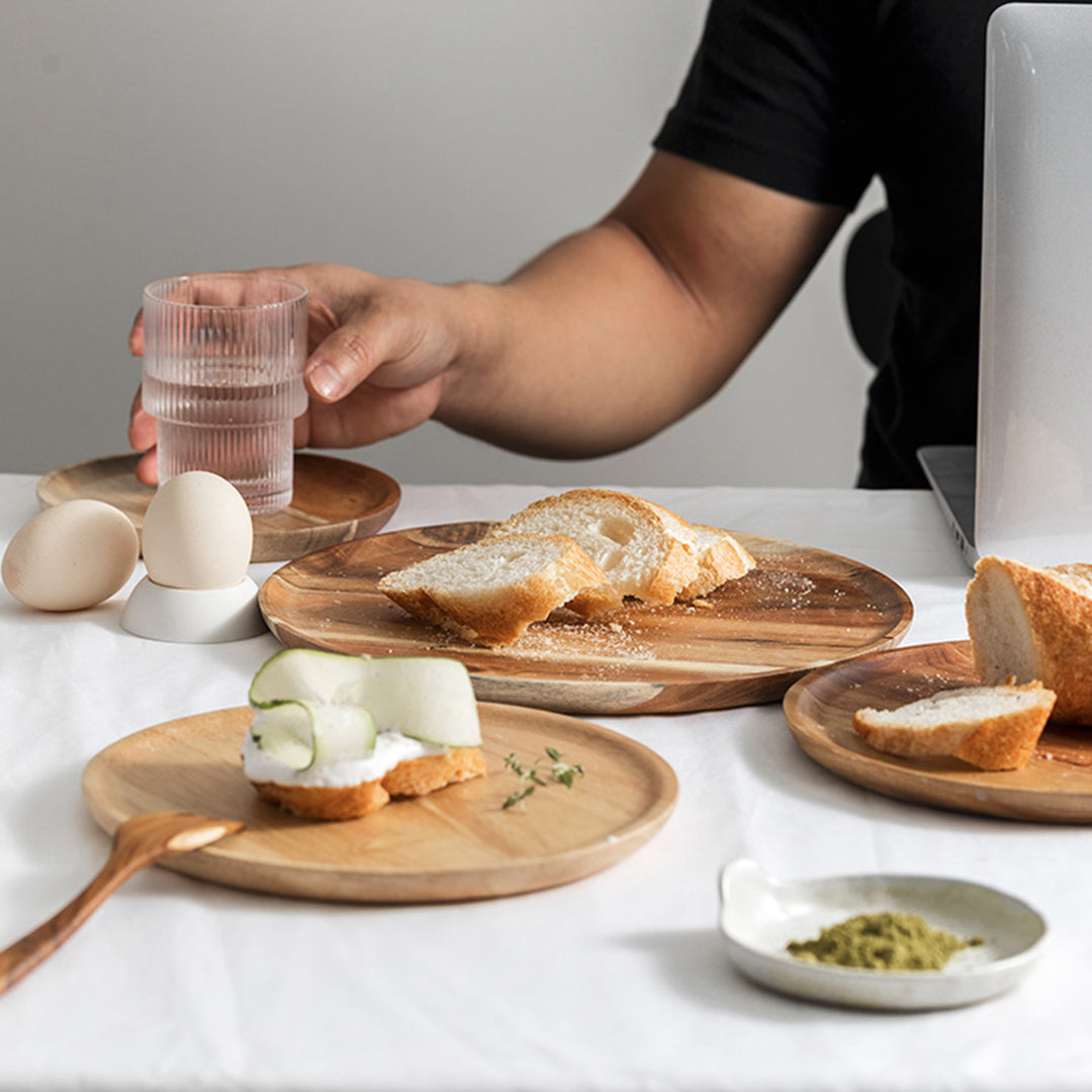 SOGA 20cm Brown Round Wooden Centerpiece Serving Tray Board Home Decor