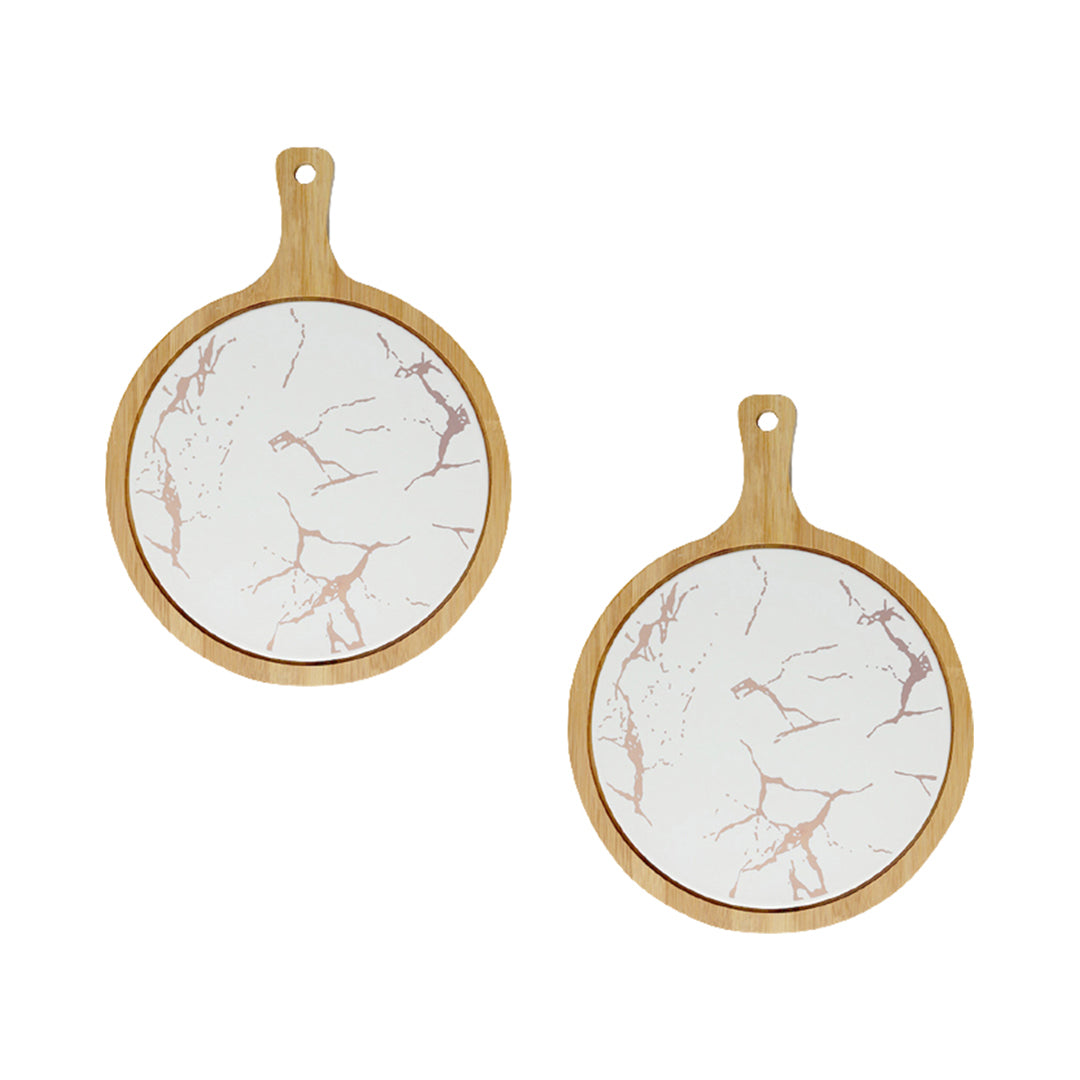SOGA 2X 30cm White Circle Wooden Serving Tray Slate Steak Serving Platter Chopping Board Paddle Home Decor