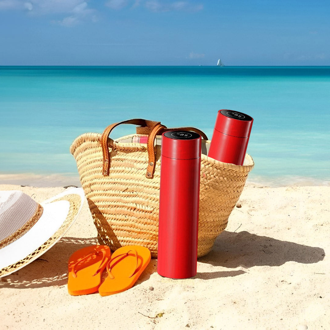 SOGA 2X 500ML Stainless Steel Smart LCD Thermometer Display Bottle Vacuum Flask Thermos Red