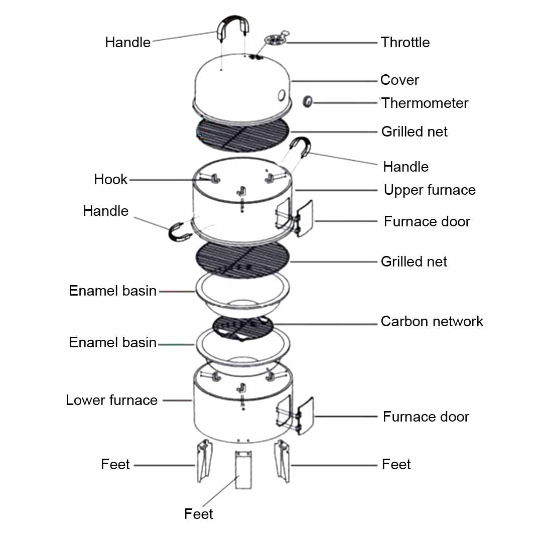 SOGA 3 In 1 Barbecue Smoker Outdoor Charcoal BBQ Grill Camping Picnic Fishing