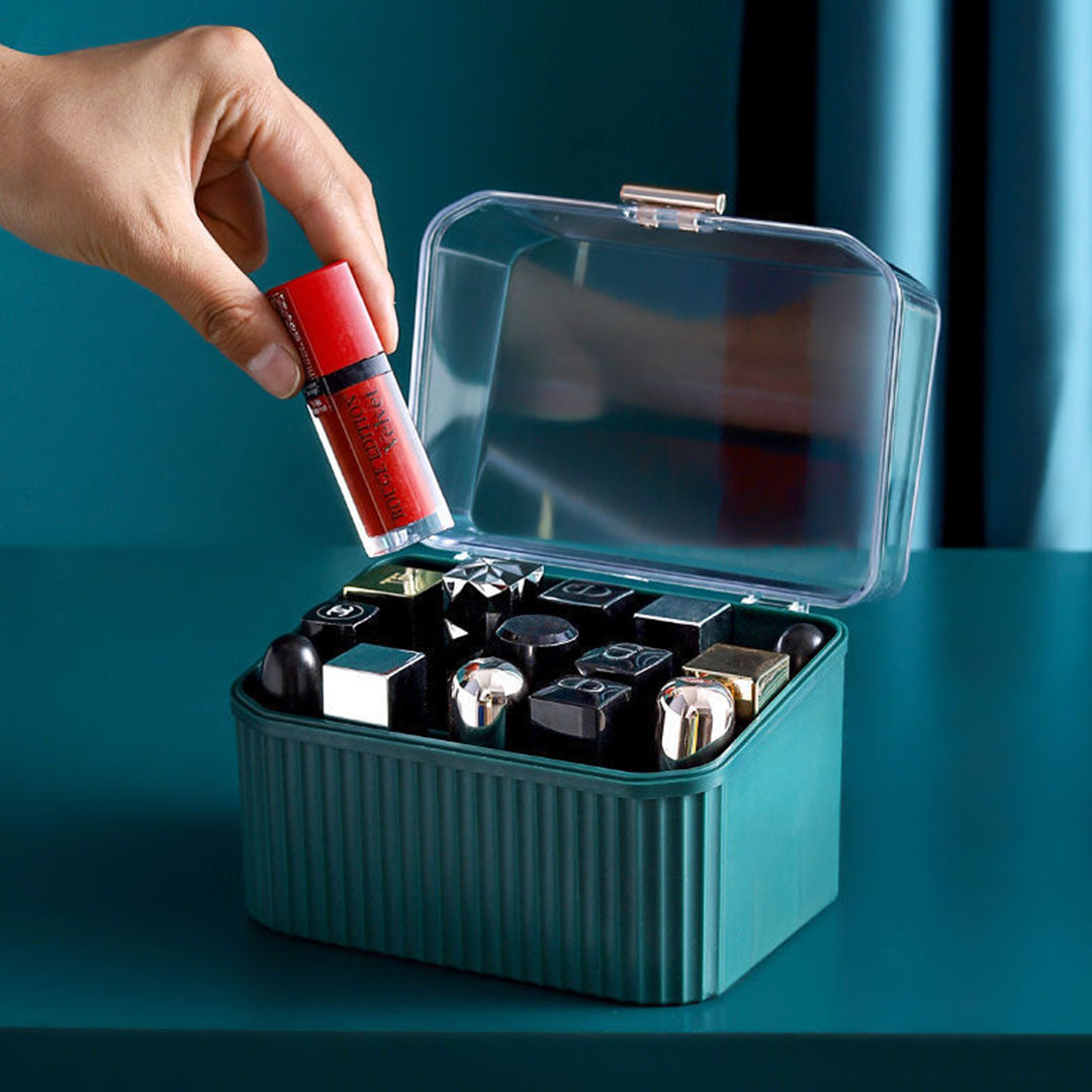 SOGA Green Cosmetic Jewelry Storage Organiser Set Makeup Brush Lipstick Skincare Holder Jewelry Storage Box with Handle