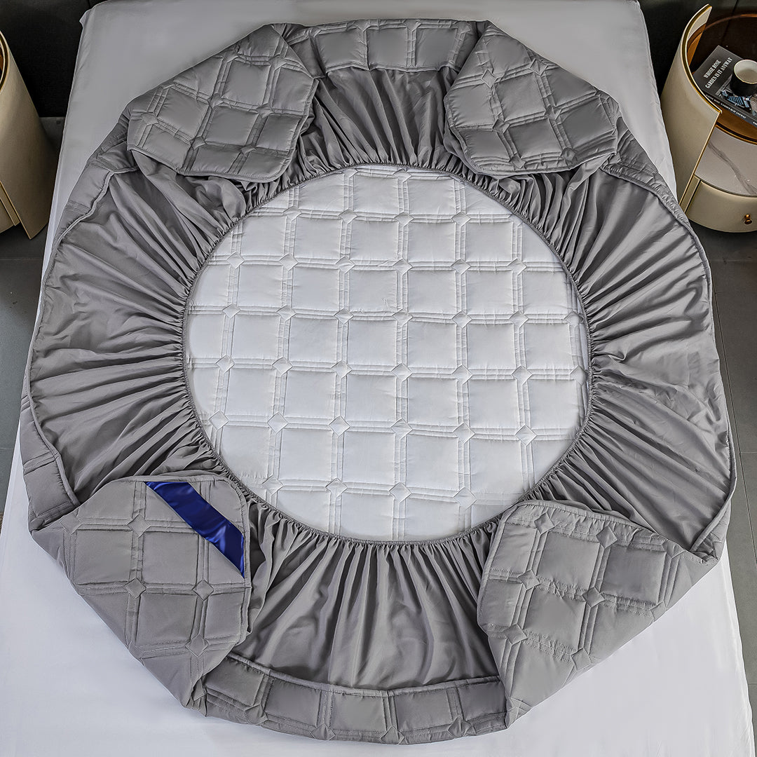 SOGA Grey 183cm Wide Mattress Cover Thick Quilted Stretchable Bed Spread Sheet Protector with Pillow Covers