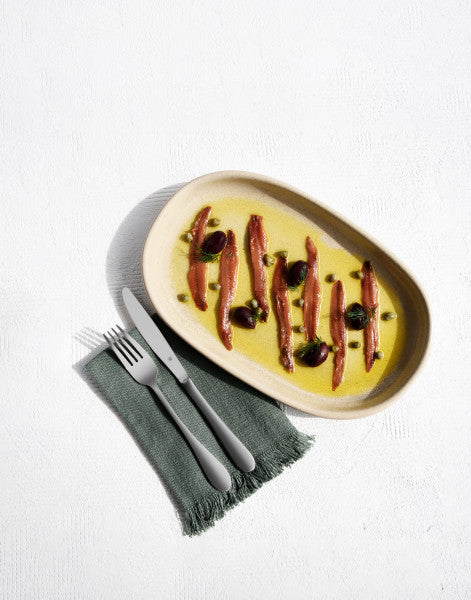 Made of clay that’s malleable and great for forming detailed shapes. Created in a two firing process where it becomes vitrified during the second firing, making porcelain an extremely durable dinnerware option that is dishwasher, microwave, and oven safe.
