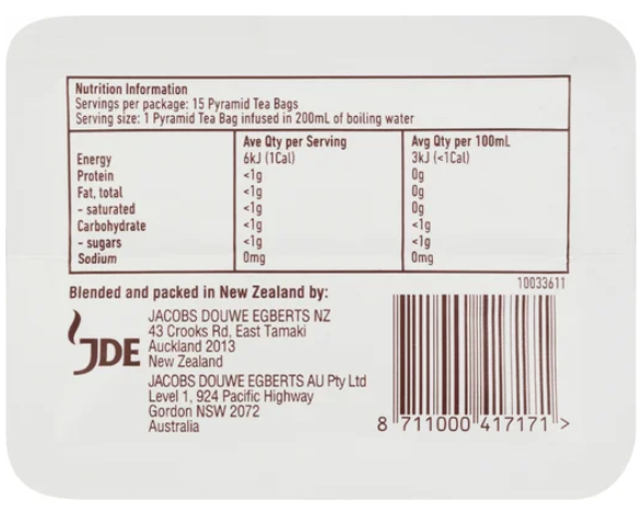 Ti Ora Green Tea With Ginger Lemongrass & New Zealand Kawakawa Pyramid Tea Bags 15pk