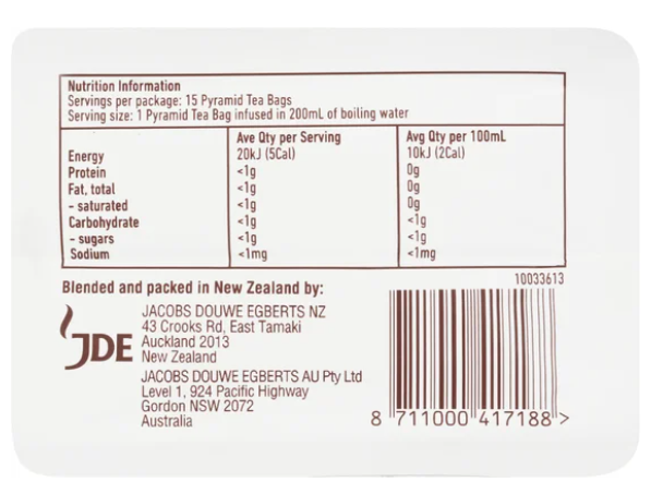 Green Tea (42%), Apple, Rosehip, Hibiscus, Liquorice Root, Natural Flavours , Orange Peel, Kawakawa leaf (2%), Passionfruit Juice Granules (2%), Peach Juice Granules (2%)