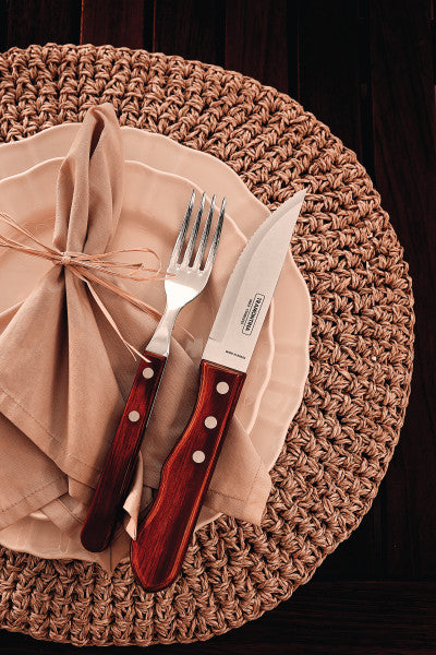 To enjoy that mouthwatering barbecue, you need the Tramontina 5-inch jumbo steak knife with stainless-steel blade and treated red Polywood handle! Highly strong and durable, it is made with a heat-treated stainless-steel blade that also ensures excellent cutting power. Its handle is made of treated red Polywood with aluminum rivets, ensuring greater resistance to impacts and high temperatures, as well as safer and more comfortable handling. In addition to all these incredible features, it is dishwasher safe, allowing you to enjoy pleasant moments without worrying about clean-up. Choose Tramontina and impress in the kitchen and at the table!