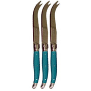 Experience the exquisite craftsmanship of the Verdier Cheese Knife Single Teal, a set of 3 meticulously crafted knives made in France. Each knife features stainless steel blades and vibrant coloured resin handles, embodying both elegance and functionality. The trademark Laguiole Bee on the handle is a symbol of superior quality and authenticity.